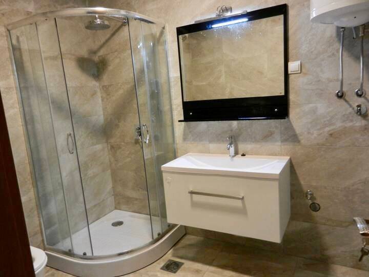 500€ + računi Površine 45 m2 sastoji se od dnevnog boravka sa kuhinjom, spavaće sobe, kupatila i terase. Namješten, čist, topli parket, panoramski prozori od poda do stropa. Nalazi se u Bečićima, 300 metara od mora, pored autobuske stanice, igrališta i IDEA marketa. Prvo plaćanje + 6 mjeseci i depozit