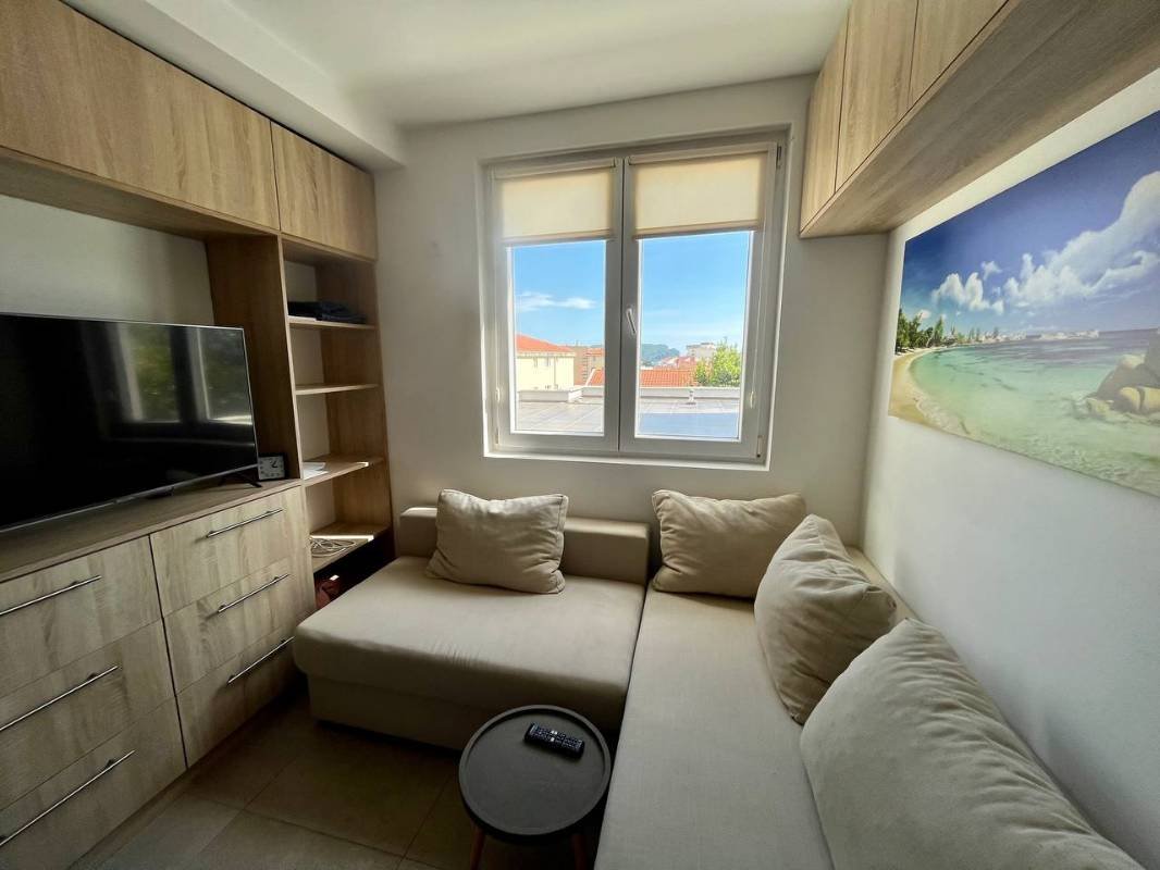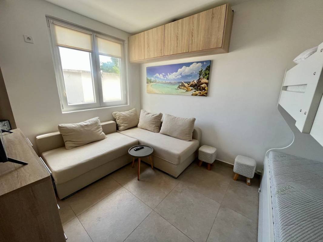 Površine 31 m2 sastoji se od dnevnog boravka sa kuhinjom i trpezarijom, kupatila i terase sa pogledom na planinu, prostor omogućava odvojenu spavaću sobu. Prednosti: namješteno, dvostrano, terasa sa pogledom na planinu, prozori prema moru, samo 550 m do mora. Mirno područje u blizini hotela Vile Park (obilaznica, ulica Kanjoša Makedonovića). Moguće je urediti terasu-vrt na krovu