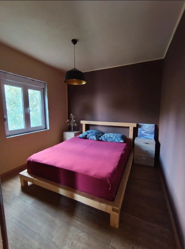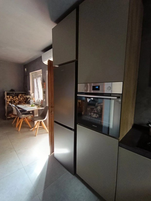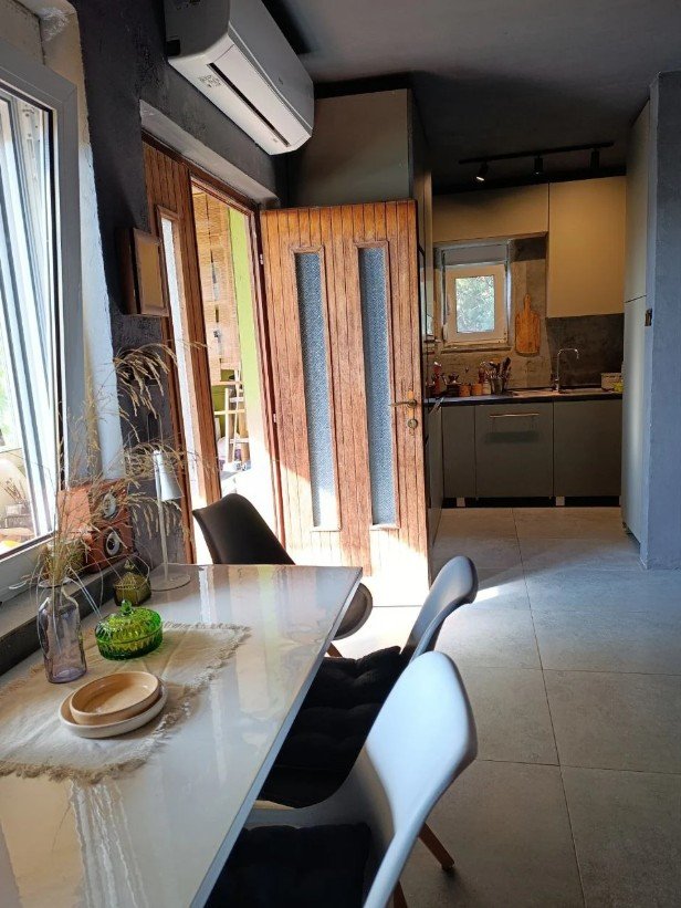 Kuća je kreirana imajući na umu lični smještaj, s pažnjom posvećenom svakom detalju. Vlasnica, dizajner i umjetnik, dizajnirao je interijer kao lični projekat: stilski luster, jedinstveni dodaci, moderna kuhinja, udobna peć, svijetli namještaj i slike stvaraju toplu i ugodnu atmosferu. Kupatilo je dizajnirano u loft stilu, s visokokvalitetnim materijalima. Raspored je dobro osmišljen: dobro opremljen ulazni prostor s ormarićem za cipele, jedna spavaća soba i svijetao dnevni boravak sa sofom i peći. Ukupna površina kuće je 68 m². Terasa je ugodno mjesto za provođenje vremena diveći se moru. Parcela je 55 m², kompaktna i laka za održavanje. Parking je ograđen. Do kuće vodi asfaltni put, što joj omogućava ugodan pristup tokom cijele godine. Kuća je potpuno spremna za useljenje i kreirana je s ljubavlju.