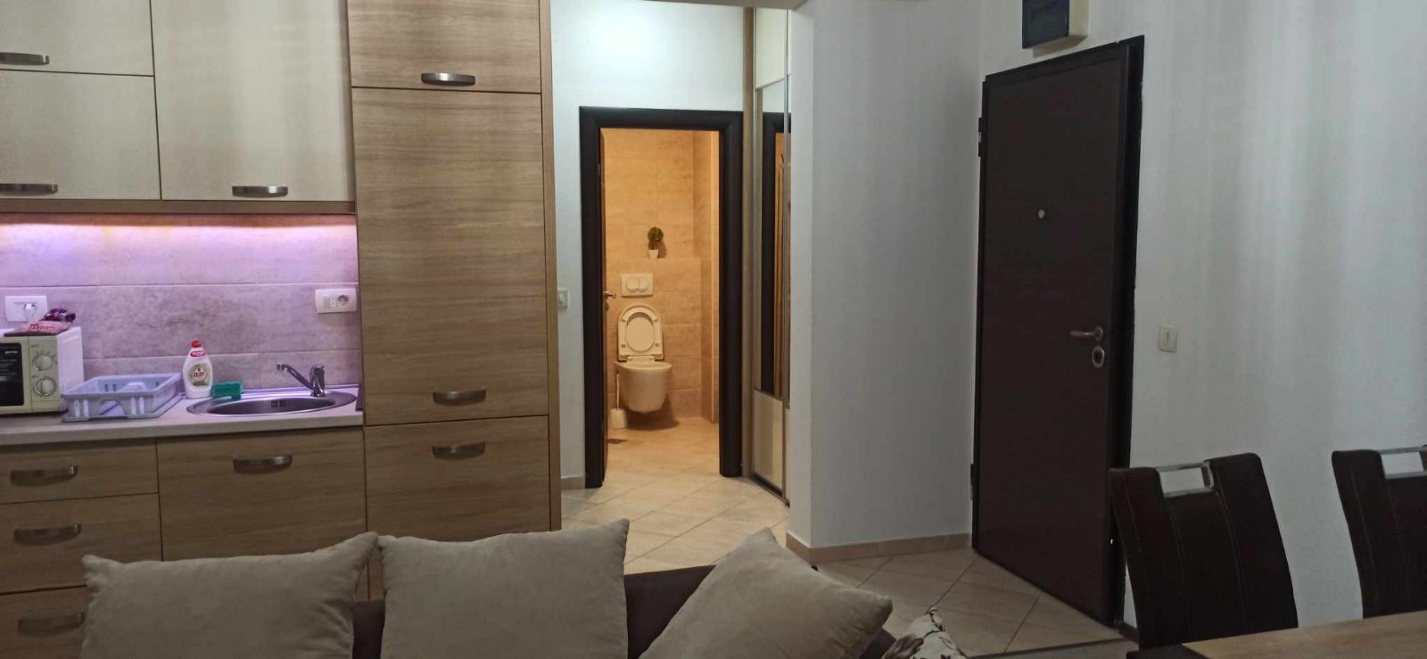 Stan se nalazi u jednom od najpraktičnijih djelova Budve — svega oko 300 metara od mora i šetališta. U neposrednoj blizini je sve što je potrebno za svakodnevni život: marketi, autobuske stanice, škola, apoteke, kao i Stari grad, koji je na par minuta hoda i predstavlja glavni turistički centar Budve. Raspored je vrlo funkcionalan i prilagođen udobnom boravku. Svijetla dnevna soba je spojena sa kuhinjskim dijelom, postavljena je velika ploča za kuvanje, udoban ugaoni dio za odmor i prostor za trpezarijski sto. Spavaća soba je prostrana i ima veliki garderober. Stan se nalazi na 3. spratu manje stambene zgrade sa liftom. U odličnom je stanju i prodaje se potpuno opremljen — sa namještajem i tehnikom, spreman za useljenje. Odlična ponuda za sve koji traže stan u centru Budve, nadomak mora i kompletne gradske infrastrukture. struktura plaćanja - prvi, posljednji mjesec i depozit u iznosu jedne mjesečne uplate