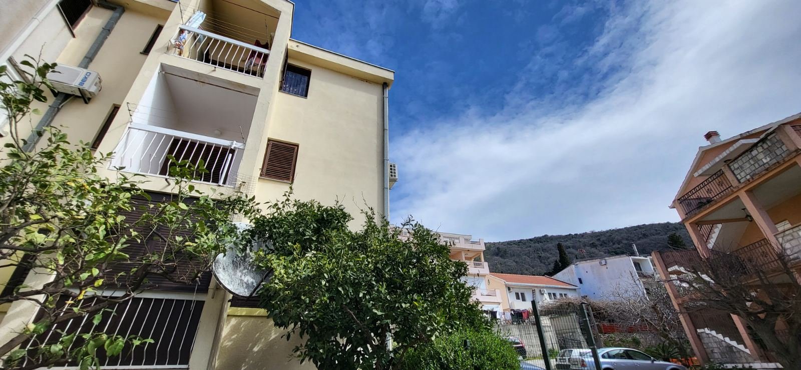 Jednosoban stan za dugoročni najam (1 godina) u Pržnu Udoban stan od 50 m², smješten u mirnom i zelenom dijelu Pržna. Raspored obuhvata jednu spavaću sobu, svijetlu dnevnu sobu sa kuhinjom, kupatilo i dvije terase — veliku od oko 9 m² i manju, na koju se izlazi iz spavaće sobe. U stanu je postavljen drveni parket, tu je klima uređaj, veliki frižider i velika šporet-ploča. Po dogovoru je moguće držati kućne ljubimce. Ispod zgrade se nalazi parking. Okruženje je veoma mirno i prijatno: iza objekta je šumski pojas, što pruža blizinu prirodi i prijatno cvrkutanje ptica. U blizini se nalaze market Franca i autobuska stanica, a do plaže Kamenovo ima svega 5 minuta hoda. Odlična opcija za one koji žele udoban život u mirnom okruženju, blizu mora.