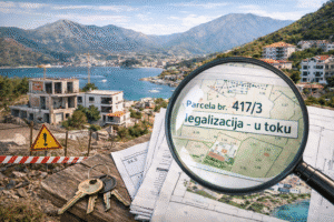 Участок у моря с градостроительными условиями 50 метров от моря в Прчани, Котор