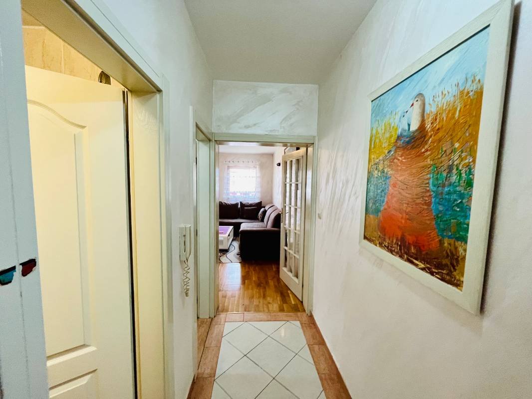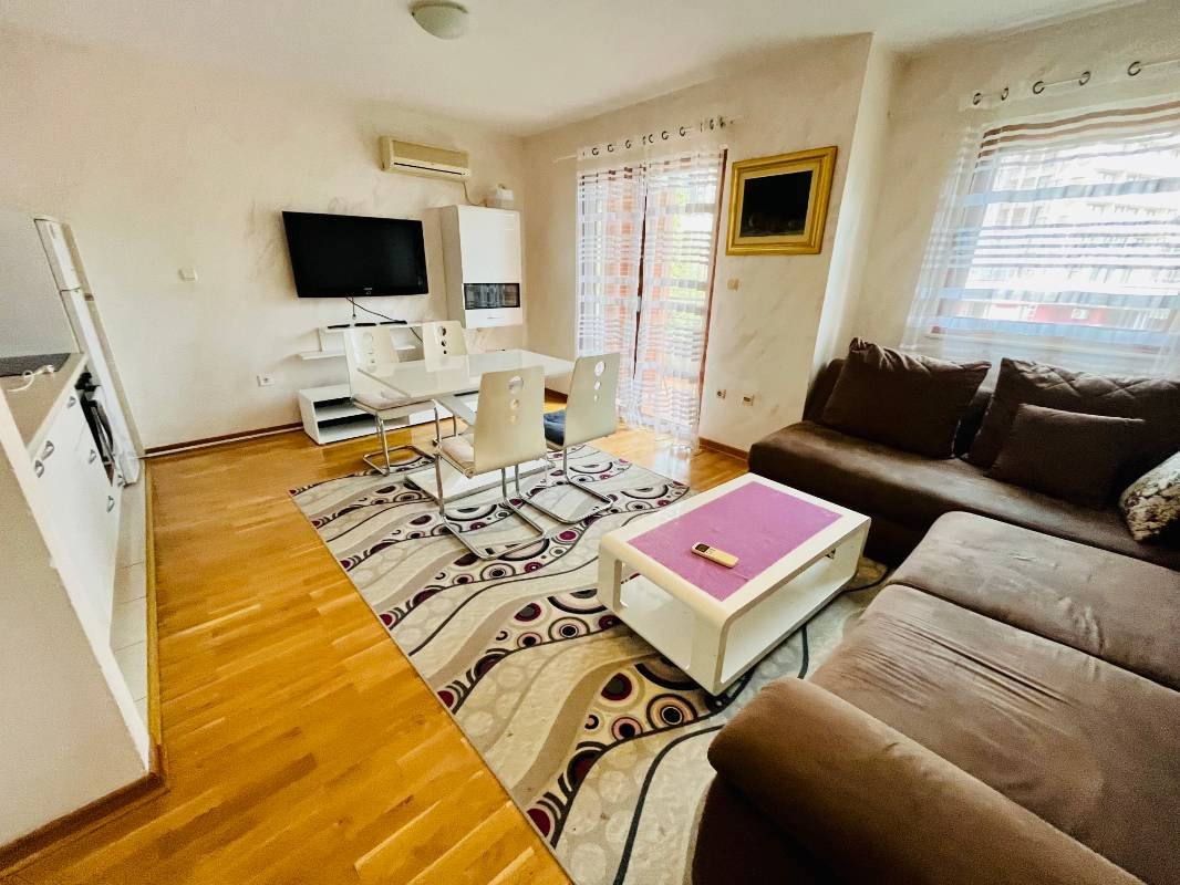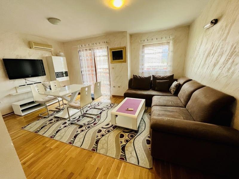 2 комнатная квартира с паркингом в районе отеля Москва в Будве на 1 год! ✔️650€ + счета Площадь 60 m2 дуплекс, состоит из гостиной с кухней, спальня , ванная комната, большая терраса и паркинг. Квартира после современного ремонта в идеальном состоянии, меблирована встроенной техникой, подогрев пола. Расположена недалеко от отеля Москва в районе Babin Do, в 7 минутах ходьбы от моря, рядом школа и TQ Plaza.