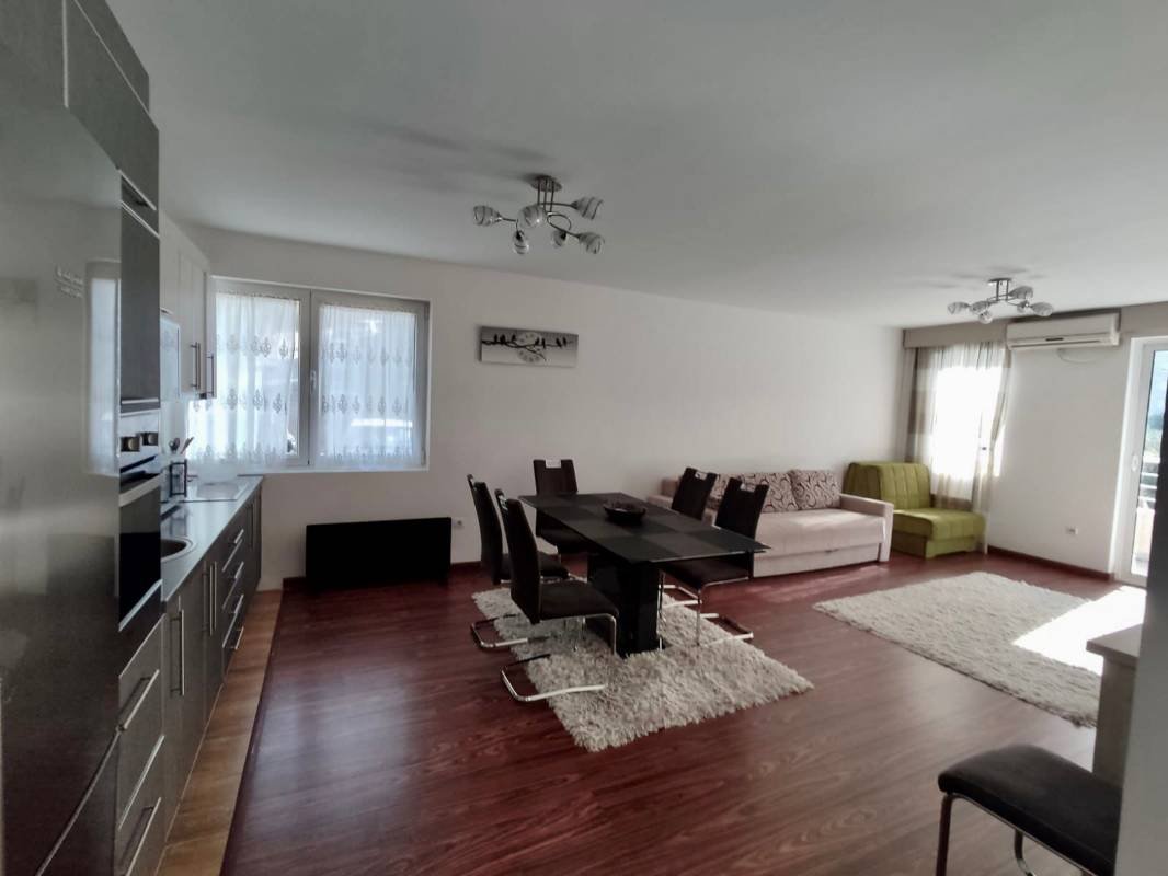 На продажу просторная двуспальная квартира в Петровце Квартира площадью 57м2 состоит из гостиной комнаты с кухонной зоной, двух спальных комнат, санузла и террасы с видом на море. Квартира меблирована, можно сразу заселяться или сдавать в аренду. Дом расположен в 5 минутах ходьбы от моря, около 500 метров. Перед домом есть парковочные места.
