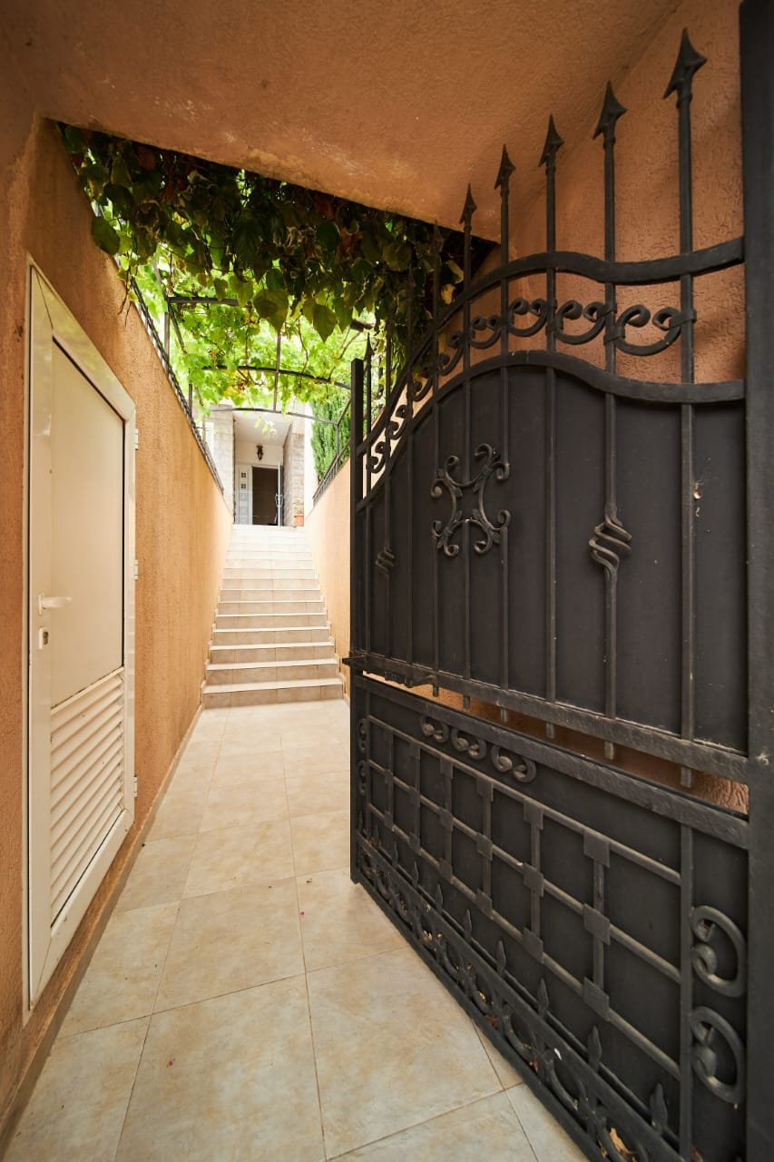 Вилла находится в Бечичах, Ивановичах. Адрес Бечичи, Ивановичи. Нова улица б/б. Вилла имеет 4 этажа плюс цокольный этаж, общей площадью 495 м2. Участок на котором расположена вилла имеет 415м2 На участке расположен бассейн 3,3 на 7 м а так же фруктовые деревья ( Лимон, Апельсин, Мандарины, Гранат, Яблоня, Киви, Кумкват, Оливковые деревья а так же хвойные деревья. В цокольном этаже находится гараж на 2 машины, гардеробная, прачечная, мастерская, подреб и кладовая комната. На первом этаже дома расположена просторная гостинная с кухней, столовой и камином а так же гостевой санузел и сауна имеющая отдельный выход к бассейну. На втором этаже находятся три спальные комнаты, и большая террасса с видом на море. Каждая спальня имеет свой саузел с душевой кабиной. На третьем этаже находится хозяйская спальня с санузлом. На четвертом этаже расположен кабинет с большой террасой с которой открывается превосходный вид на Светой Стефан, на остров Святого Николы и всю будванскую ривьеру. Водоснабжение двух видов, городская вода и сельская \\\\\\\"бесплатная\\\\\\\"вода. Отопление дома осуществляется за счет камина, электрических теплых полов и кондиционеров. Вилла имеет удобный подъезд, прекрасный вид на море, а так же хорошее окружение.