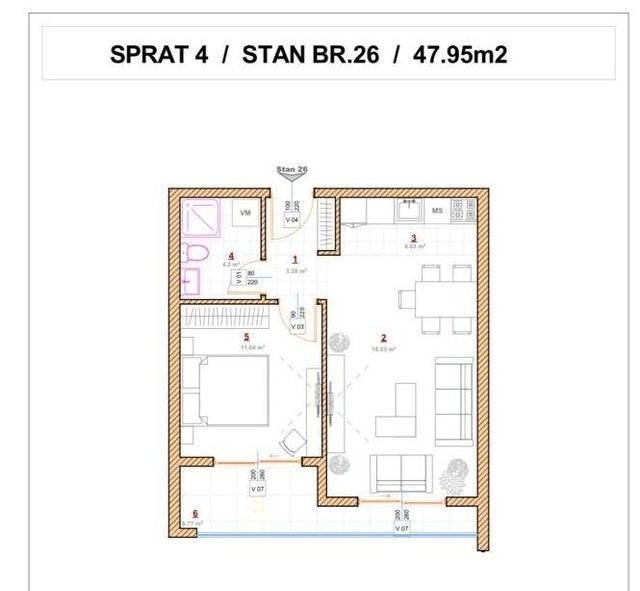 Квартира в новостройке в спокойном зелёном районе Улциня. Площадь — 48 м², этаж — 4, современный дом с лифтом. Планировка: гостиная с кухонной зоной, отдельная спальня, санузел, балкон. Из квартиры открывается вид на море. Дом современной архитектуры, используется качественные строительные материалы. Перед зданием предусмотрена парковка. Расстояние до моря — около 3 км. Объект находится на стадии строительства, срок сдачи — март 2026 года. Предложение отличается привлекательной ценой и хорошим соотношением цена–качество, что делает его интересным как для проживания, так и для инвестиций.