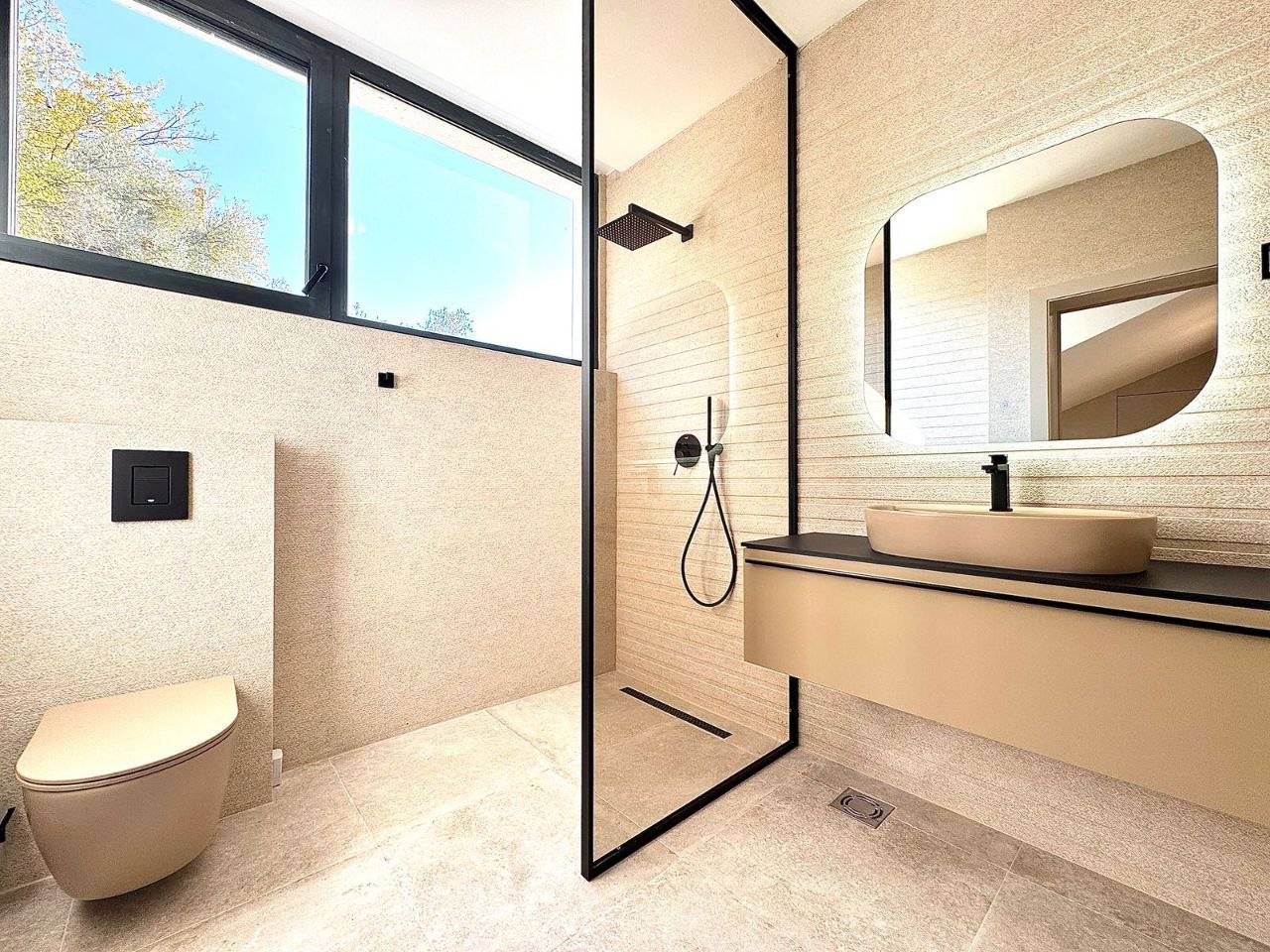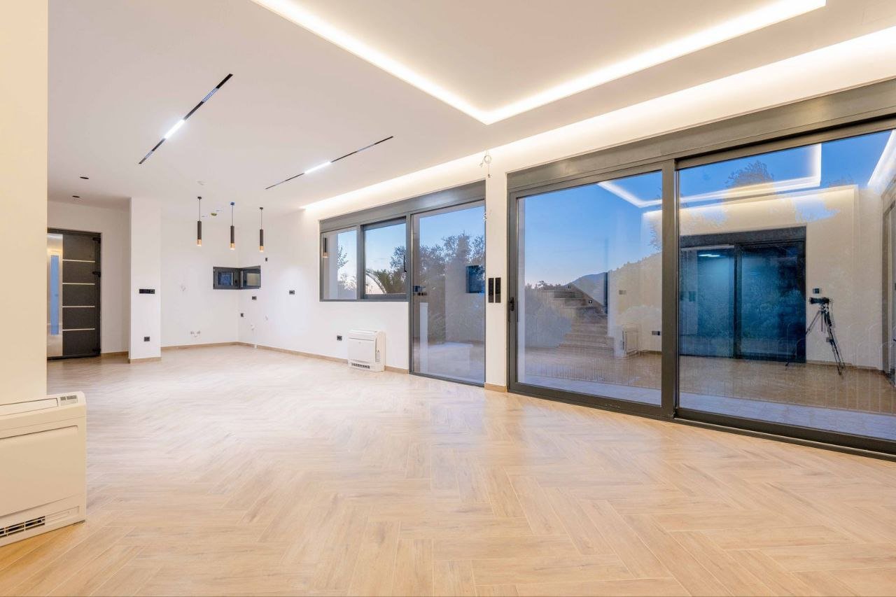 Подвал: 2 гаражных места, техническое помещение, прачечная, 2 сауны, тренажерный зал, джакузи и туалет. Первый этаж: гостиная с обеденной зоной, кухня, кладовая, гостевой туалет. Манжер: 3 спальни, 2 ванные комнаты.