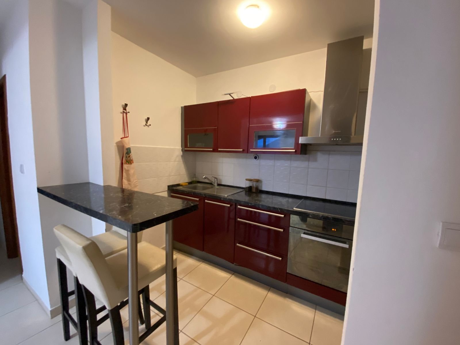 Продаётся квартира с двумя спальнями в жилом комплексе Bečići Sunset, Бечичи. Площадь квартиры — 64 м². Планировка включает гостиную, объединённую с кухней, две спальные комнаты, санузел с ванной и два балкона с видом на море. Квартира полностью укомплектована мебелью и бытовой техникой и готова к проживанию. Комплекс предлагает развитую инфраструктуру для комфортной жизни: два бассейна, парковку и прачечную. Локация отличается удобной транспортной доступностью — до магистрали около 400 м, расстояние до моря по прямой 550 метров. Документы чистые.