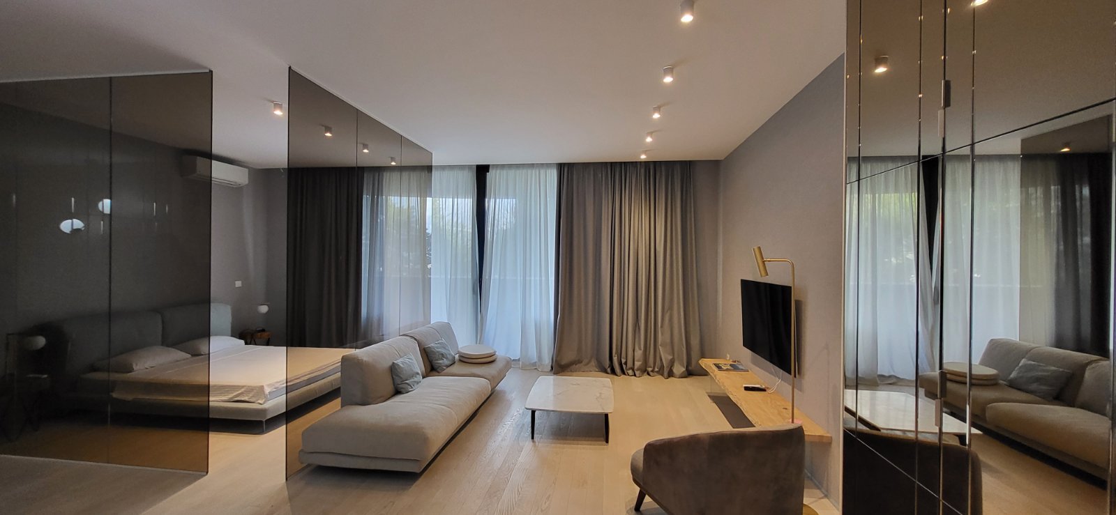 Резиденция 442 м2 с бассейном и видом на море в Рафаиловичи Общая площадь 442 м2 из которых 156 м2 терасса с зоной барбекю и бассейн. Состоит из 2 дуплекс апартамента: ❕156 м2 - гостиная с кухней, 3 спальни, 2 балкона, 3 ванной комнаты. ❕130 м2 - гостиная, 1 спальня, кухня, трапезная и конференц зал. По апартаменту тёплый пол и стильная европейская техника. Гараж в подземном паркинге.
